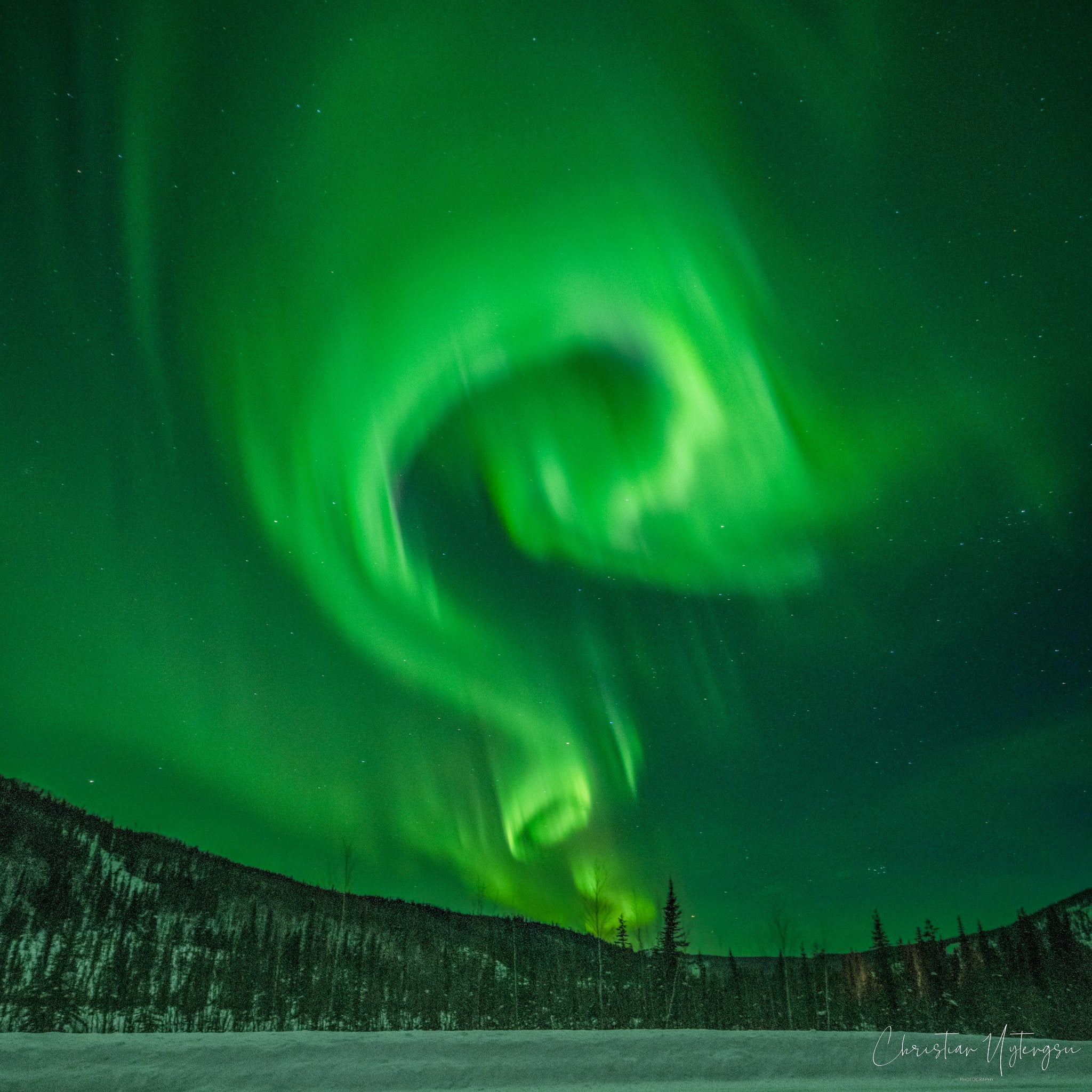This photo from Alaska captures a rare sight, the aurora borealis swirling across the sky. The vibrant colors and layered curves of light made the freezing night feel electric. It was a thrilling moment of wonder, and one that perfectly reflected the wild, unpredictable beauty of the Alaskan night sky.